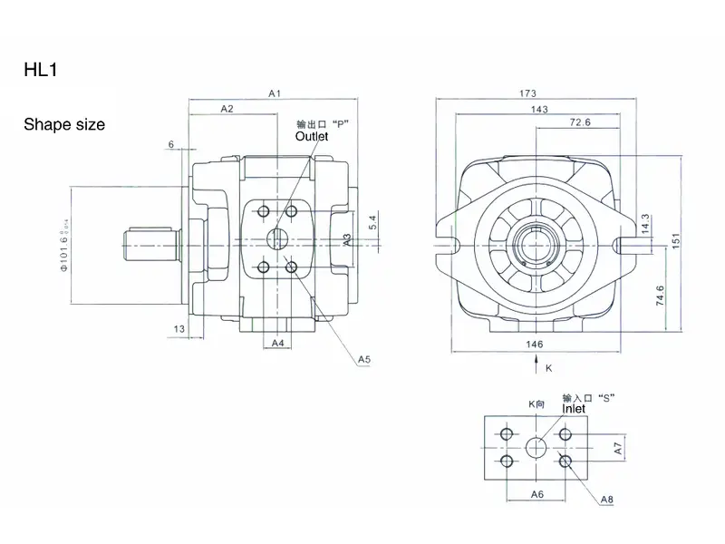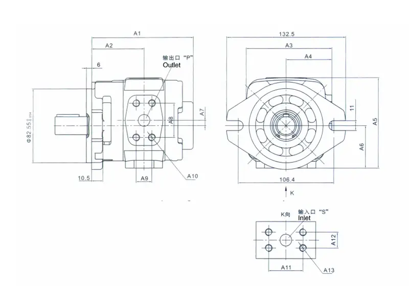 Modelo de bomba | A1 | A2 | A3 | A4 | A5 | A6 | A7 | P | A8 | A9 | A10 | S | A11 | A12 | A13 |
