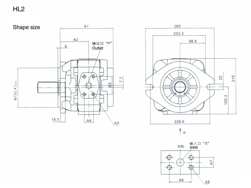 Modelo de bomba | A1 | A2 | P | A3 | A4 | A5 | S | A6 | A7 | A8 |