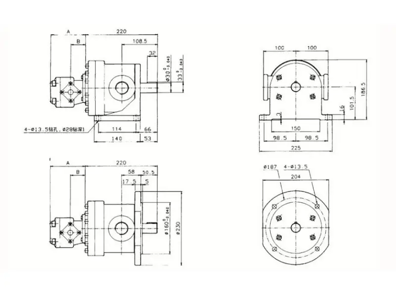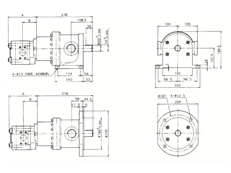 Esta bomba utiliza una bomba de paletas de desplazamiento fijo de gran caudal y bajo nivel de ruido para formar una bomba de alta-baja presión. Puede integrarse en un sistema de circuito de alta-baja presión con un solo motor, lo que ahorra energía eficazmente.