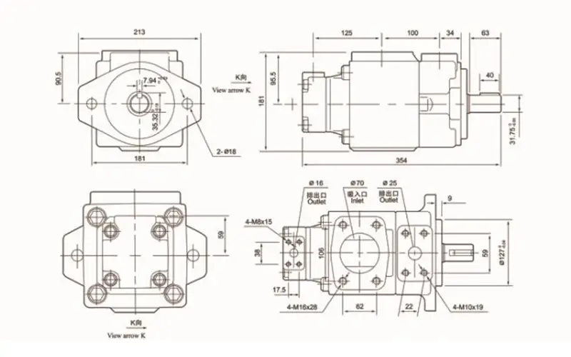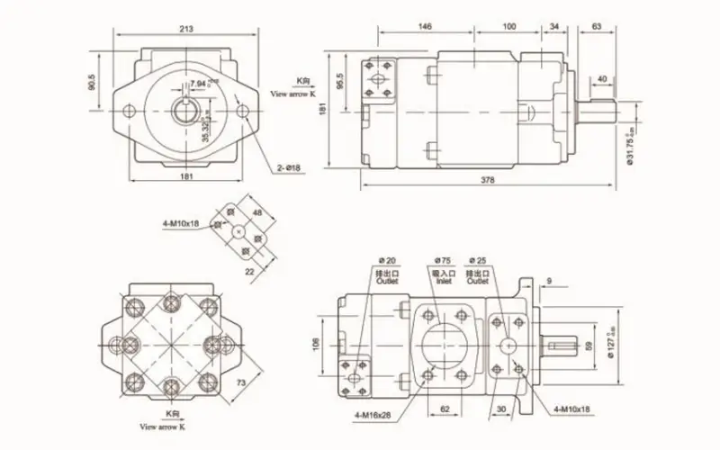 Esta serie se compone de dos bombas de paletas de alta presión, diseñadas para proporcionar una doble fuente hidráulica para circuitos hidráulicos que requieren dos acciones simultáneas. Cuenta con un solo puerto de succión, lo que ahorra tuberías, simplifica su uso y reduce costos.